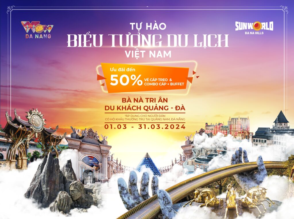 Đặc biệt, từ ngày 01.03 – 31.03.2024, Sun World Ba Na Hills đang triển khai chương trình “Tri ân du khách Quảng Nam – Đà Nẵng” với ưu đãi lên đến 50% cho vé vào cổng và combo vé cổng + buffet trưa. Và món quà tri ân ưu đãi dành cho toàn bộ du khách Việt Nam cũng sẽ được công bố trong thời gian tới.