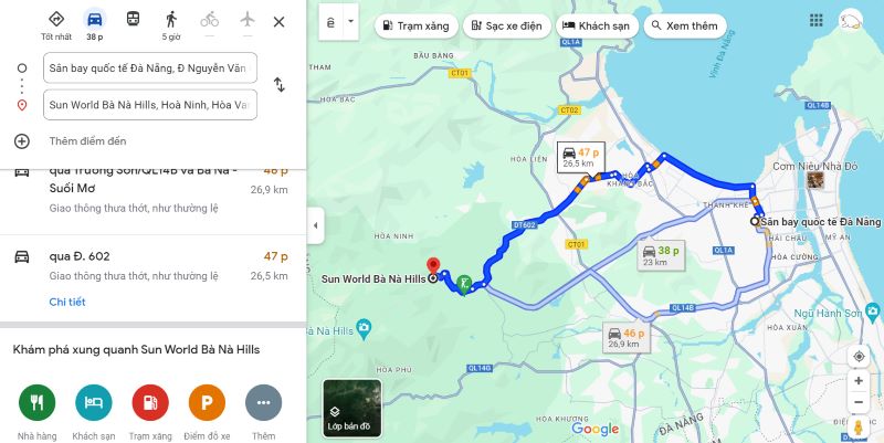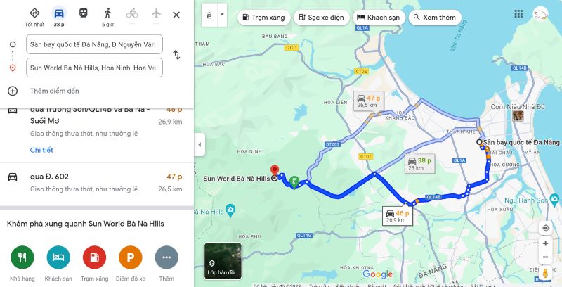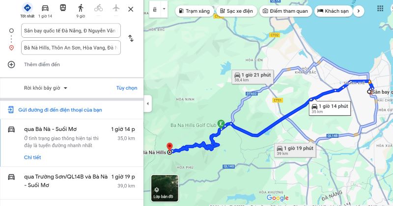 Khoảng cách từ sân bay Đà Nẵng đến Ba Na Hills